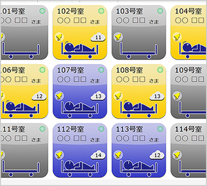 眠りスキャンをLANなどでネットワークすることで各病室での病床の状況を一括でリアルタイムにモニタリングすることができます。